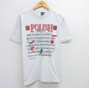 L★古着 HAGGAR 半袖 ビンテージ Tシャツ メンズ 90年代 90s POLISH メッセージ コットン クルーネック USA製 薄グレー 霜降り