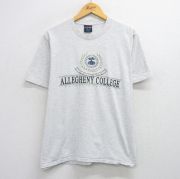 L★古着 ジャンスポーツ 半袖 ビンテージ Tシャツ メンズ 90年代 90s ALLEGHENY カレッジ コットン クルーネック USA製 薄グレー 霜降り