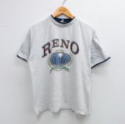 L★古着 半袖 ビンテージ Tシャツ メンズ 90年代 90s レノ コットン クルーネック 薄グレー 霜降り