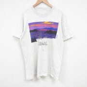 L★古着 半袖 ビンテージ Tシャツ メンズ 90年代 90s LBI クジラ コットン クルーネック USA製 薄グレー