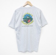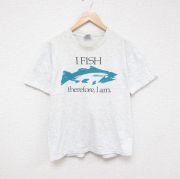 L★古着 半袖 ビンテージ Tシャツ メンズ 90年代 90s 魚 クルーネック 薄グレー 霜降り