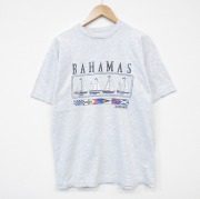 L★古着 半袖 ビンテージ Tシャツ メンズ 90年代 90s バハマ クルーネック 薄グレー 霜降り