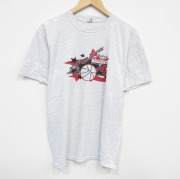 L★古着 半袖 ビンテージ Tシャツ メンズ 00年代 00s バスケットボール コットン クルーネック 薄グレー 霜降り