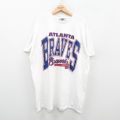 【商品名】 XL★古着 リー Lee 半袖 ビンテージ Tシャツ メンズ 90年代 90s MLB アトランタブレーブス 大きいサイズ ロング丈 コットン クルーネック USA製 白