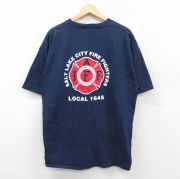 XL★古着 半袖 ビンテージ Tシャツ メンズ 00年代 00s 消防署 コットン クルーネック 紺