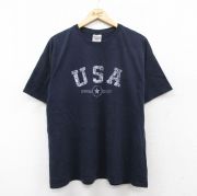 XL★古着 半袖 ビンテージ Tシャツ メンズ 00年代 00s USAロゴ コットン クルーネック 紺