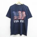 L★古着 半袖 ビンテージ Tシャツ メンズ 00年代 00s 星条旗 USAロゴ クルーネック 紺 ネイビー 24apr16 中古