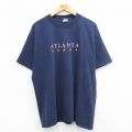 【商品名】 XL★古着 半袖 ビンテージ Tシャツ メンズ 90年代 90s アトランタ 刺繍 大きいサイズ コットン クルーネック USA製 紺