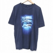 XL★古着 半袖 ビンテージ Tシャツ メンズ 00年代 00s サメ 大きいサイズ クルーネック 紺