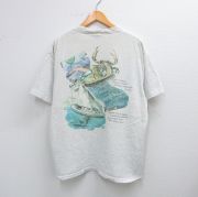 L★古着 半袖 ビンテージ Tシャツ メンズ 90年代 90s 魚 クルーネック 薄グレー 霜降り