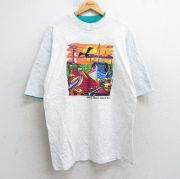 L★古着 半袖 ビンテージ Tシャツ メンズ 90年代 90s ヤシの木 ビーチ コットン クルーネック 薄グレー 霜降り