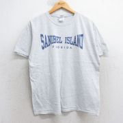 L★古着 半袖 ビンテージ Tシャツ メンズ 00年代 00s サニベル フロリダ クルーネック 薄グレー 霜降り