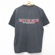 L★古着 ヘインズ 半袖 ビンテージ Tシャツ メンズ 00年代 00s BITE ME fishing コットン クルーネック 黒