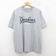 XL★古着 ナイキ NIKE 半袖 ビンテージ Tシャツ メンズ 00年代 00s MLB ニューヨークヤンキース クルーネック グレー 霜降り メジャーリーグ ベースボール 野球