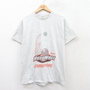 L★古着 半袖 ビンテージ Tシャツ メンズ 00年代 00s バスケットボール コットン クルーネック 薄グレー 霜降り