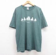 XL★古着 半袖 ビンテージ Tシャツ メンズ 00年代 00s ヨット 大きいサイズ コットン クルーネック 緑