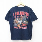 L★古着 半袖 ビンテージ Tシャツ メンズ 00年代 00s FIRE VOLUNTEER コットン クルーネック 紺