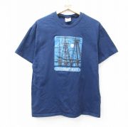 L★古着 半袖 ビンテージ Tシャツ メンズ 00年代 00s レッドウッドバンク 灯台 コットン クルーネック 紺