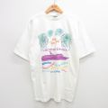 L★古着 半袖 ビンテージ Tシャツ メンズ 90年代 90s 船 花火 マイアミ コットン クルーネック USA製 白 ホワイト 24jul27 中古