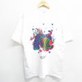 L★古着 半袖 ビンテージ Tシャツ メンズ 90年代 90s 魚 コットン クルーネック USA製 白