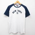 L★古着 ナイキ NIKE 半袖 ビンテージ Tシャツ メンズ 00年代 00s MLB ニューヨークヤンキース ラグラン クルーネック 白 ホワイト メジャーリーグ ベースボール 野球 25apr02 中古