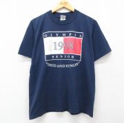 L★古着 フルーツオブザルーム 半袖 ビンテージ Tシャツ メンズ 90年代 90s オリンピア クルーネック 紺