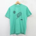 L★古着 半袖 ビンテージ Tシャツ メンズ 90年代 90s 魚 クルーネック USA製 青緑