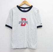 M★古着 チャンピオン champion 半袖 ビンテージ Tシャツ メンズ 90年代 90s デュケイン クルーネック 薄グレー 霜降り リンガー