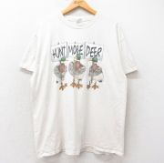 XL★古着 半袖 ビンテージ Tシャツ メンズ 00年代 00s 鳥 HUNT 大きいサイズ コットン クルーネック 生成り