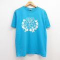 L★古着 半袖 ビンテージ Tシャツ メンズ 00年代 00s スカル ギリシャ文字 コットン クルーネック 青 ブルー 25apr15 中古
