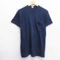 M★古着 半袖 ビンテージ Tシャツ メンズ 80年代 80s 無地 胸ポケット付き クルーネック 紺