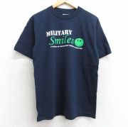 M★古着 半袖 ビンテージ Tシャツ メンズ 90年代 90s スマイル ミリタリー コットン クルーネック 紺