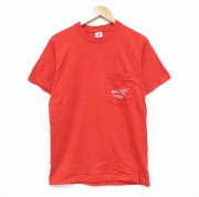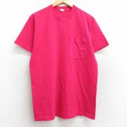 M★古着 半袖 ビンテージ Tシャツ メンズ 90年代 90s 無地 胸ポケット付き クルーネック 濃ピンク