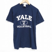 M★古着 半袖 ビンテージ Tシャツ メンズ 00年代 00s イェール YALE コットン クルーネック 紺