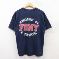 【50%OFF】L★古着 ジャージーズ 半袖 ビンテージ Tシャツ メンズ 00年代 00s FDNY コットン クルーネック 紺 ネイビー 25apr24 中古