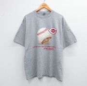 XL★古着 半袖 ビンテージ Tシャツ メンズ 00年代 00s MLB シンシナティレッズ 大きいサイズ クルーネック グレー 霜降り メジャーリーグ ベースボール 野球