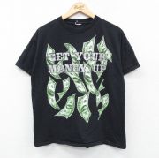 L★古着 半袖 ビンテージ Tシャツ メンズ 00年代 00s ドル札 ラメ クルーネック 黒