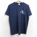 M★古着 ラッセル 半袖 ビンテージ Tシャツ メンズ 90年代 90s 鳥 Osterクルーネック USA製 紺 ネイビー 【spe】 25apr24 中古