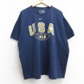 XL★古着 半袖 ビンテージ Tシャツ メンズ 00年代 00s USAロゴ 大きいサイズ コットン クルーネック 紺