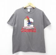L★古着 半袖 ビンテージ Tシャツ メンズ 00年代 00s 鳥 カーディナルズ コットン クルーネック 濃グレー