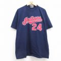 【商品名】 XL★古着 マジェスティック 半袖 ビンテージ Tシャツ メンズ 00年代 00s MLB クリーブランドインディアンス マニーラミレス 24 コットン クルーネック 紺 メジャーリーグ ベースボール 野球