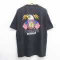 【商品名】 XL★古着 半袖 ビンテージ Tシャツ メンズ 90年代 90s 鳥 星条旗 デトロイト 胸ポケット付き コットン クルーネック USA製 黒