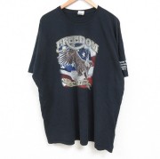 XL★古着 半袖 Tシャツ メンズ 鳥 星条旗 大きいサイズ コットン クルーネック 黒
