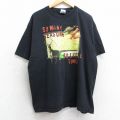 XL★古着 半袖 ビンテージ Tシャツ メンズ 00年代 00s シカ 鳥 地図 コットン クルーネック 黒 ブラック 25may01 中古