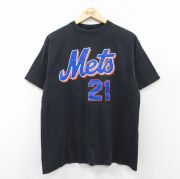 L★古着 半袖 ビンテージ Tシャツ メンズ 00年代 00s MLB ニューヨークメッツ コットン クルーネック 黒 メジャーリーグ ベースボール 野球