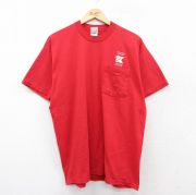 【商品名】 XL★古着 ラッセル 半袖 ビンテージ Tシャツ メンズ 00年代 00s 無地 胸ポケット付き コットン クルーネック 赤