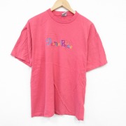 L★古着 半袖 ビンテージ Tシャツ メンズ 90年代 90s プエルトリコ 刺繍 コットン クルーネック USA製 濃ピンク