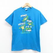 M★古着 半袖 ビンテージ Tシャツ メンズ 00年代 00s カエル コットン クルーネック 青