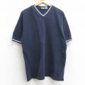 L★古着 半袖 ビンテージ Tシャツ メンズ 00年代 00s 無地 鹿の子 コットン Vネック 紺 ネイビー 25may13 中古