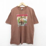 XL★古着 半袖 ビンテージ Tシャツ メンズ 00年代 00s アラスカ クマ 大きいサイズ コットン クルーネック 茶